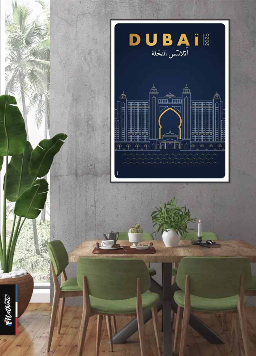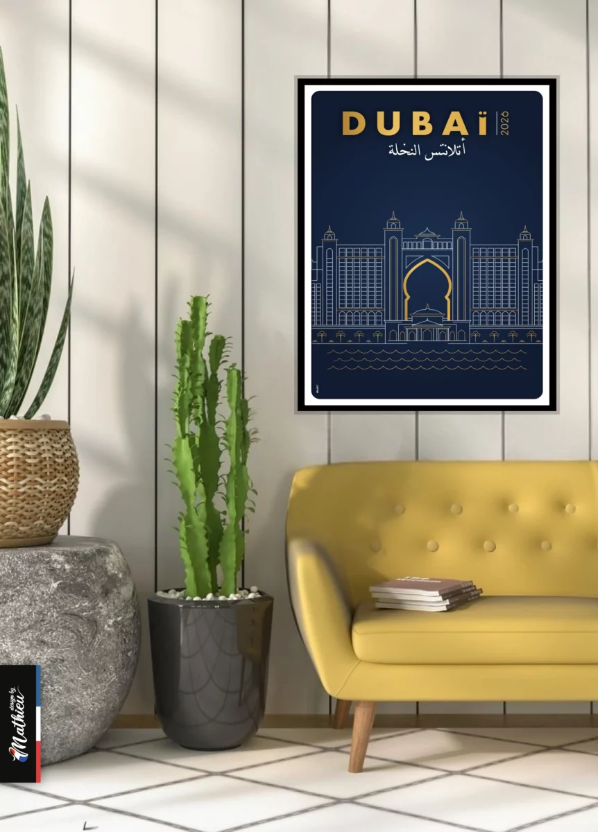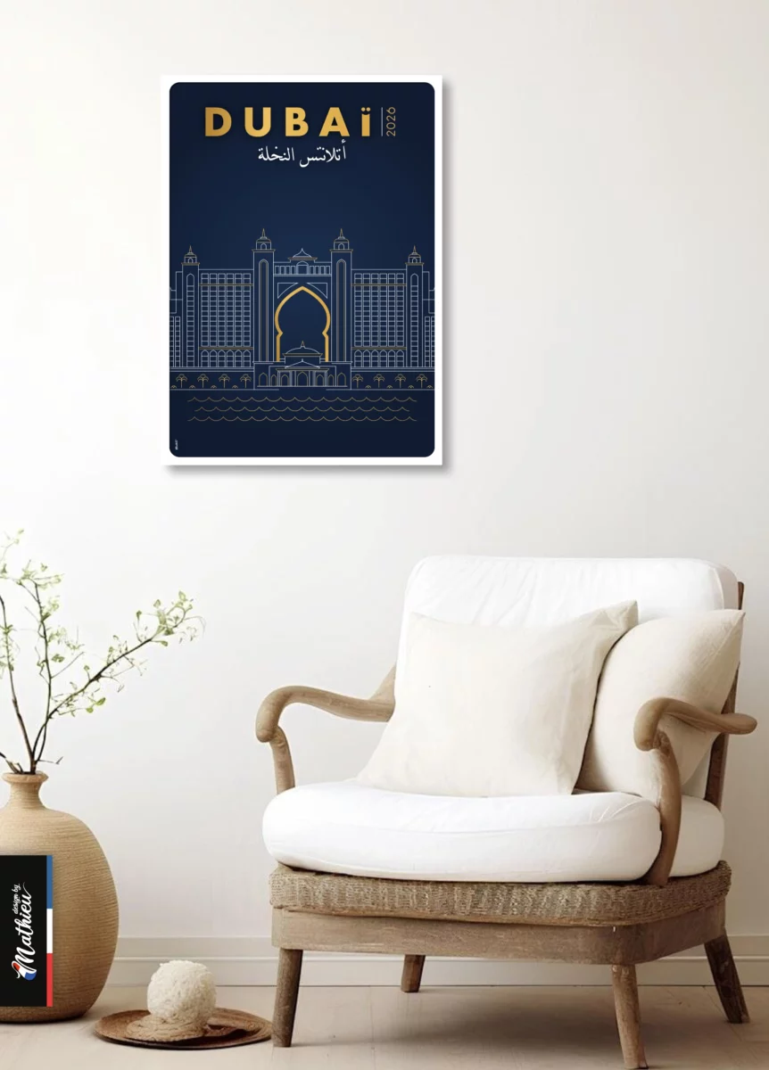 L’entrée spectaculaire vers un monde légendaire. Cette affiche capture la majesté architecturale de l’Atlantis The Palm, l’icône de l’île artificielle de Palm Jumeirah à Dubaï. J’ai choisi un traité graphique symétrique et précis, mettant en avant la complexité de sa façade et l’arche centrale monumentale qui semble s’ouvrir sur le Golfe Arabique. Une pièce forte, parfaite pour apporter une atmosphère exotique, une touche de grandeur et une véritable invitation au rêve et à l’évasion internationale à votre décoration murale.