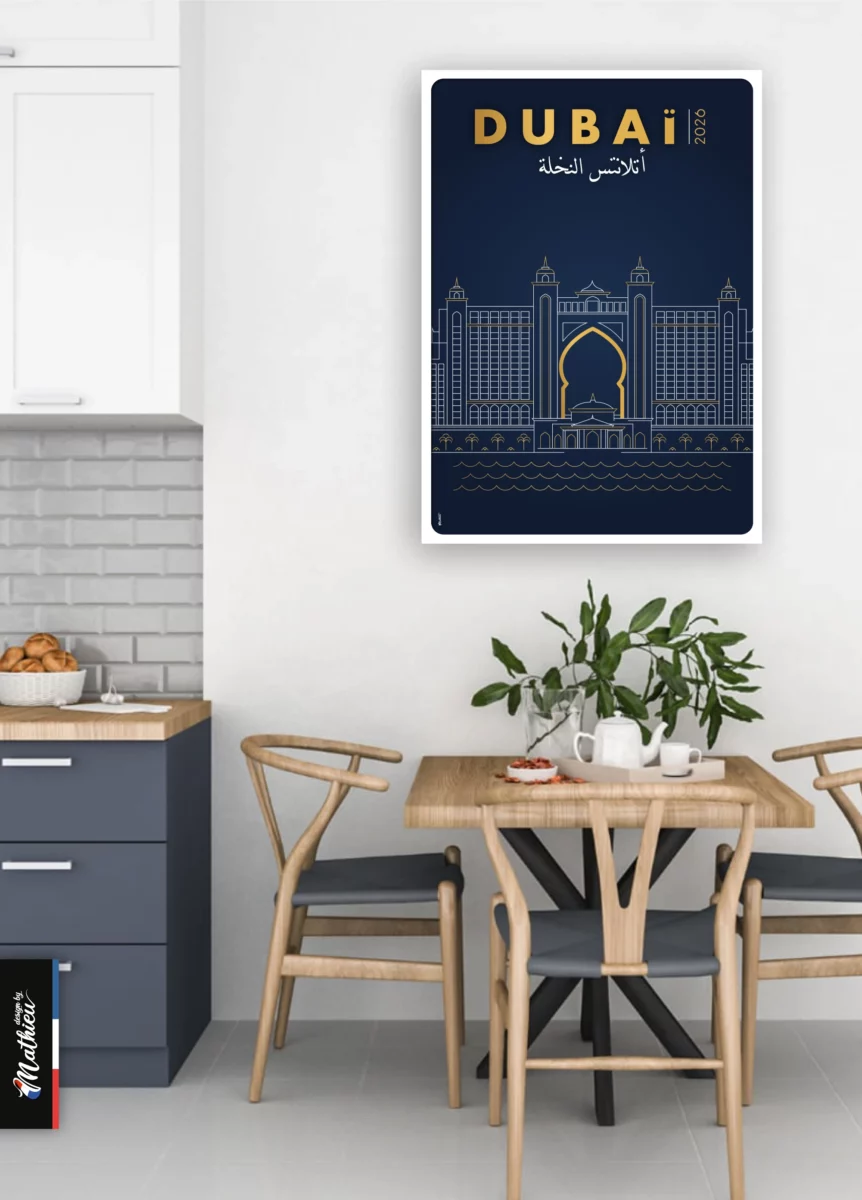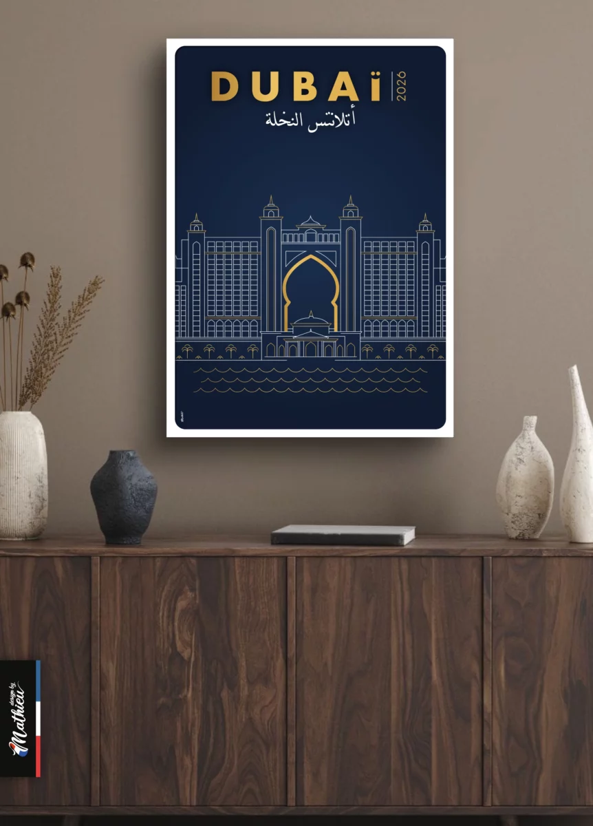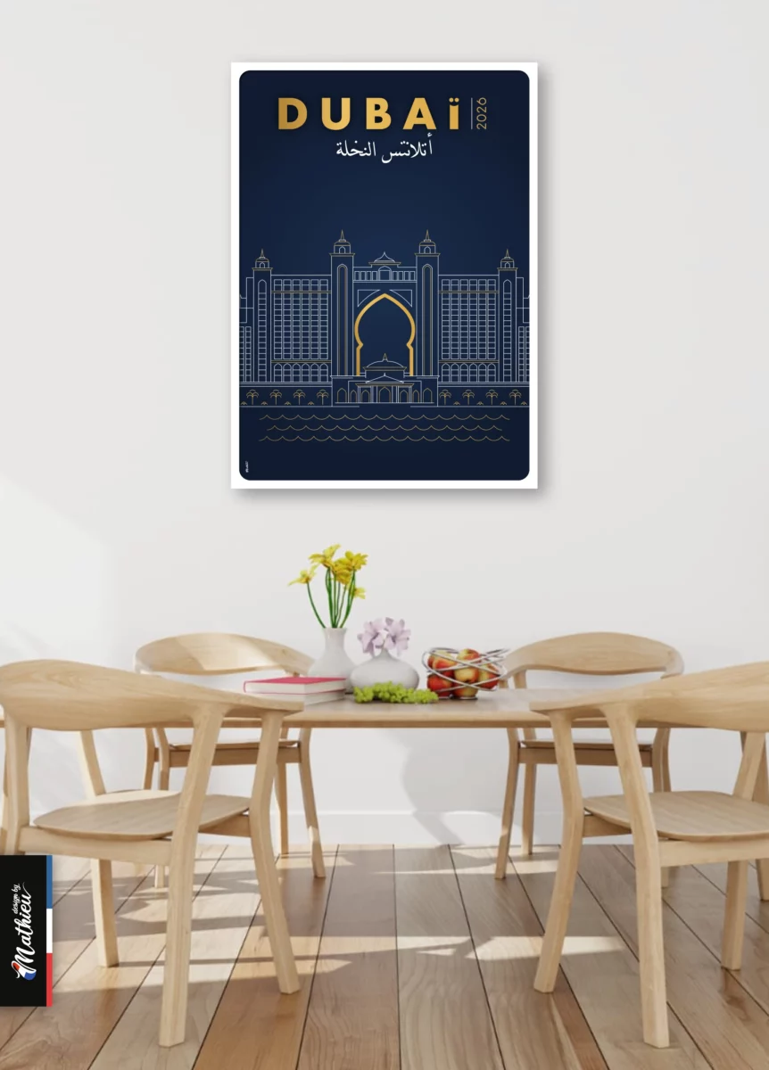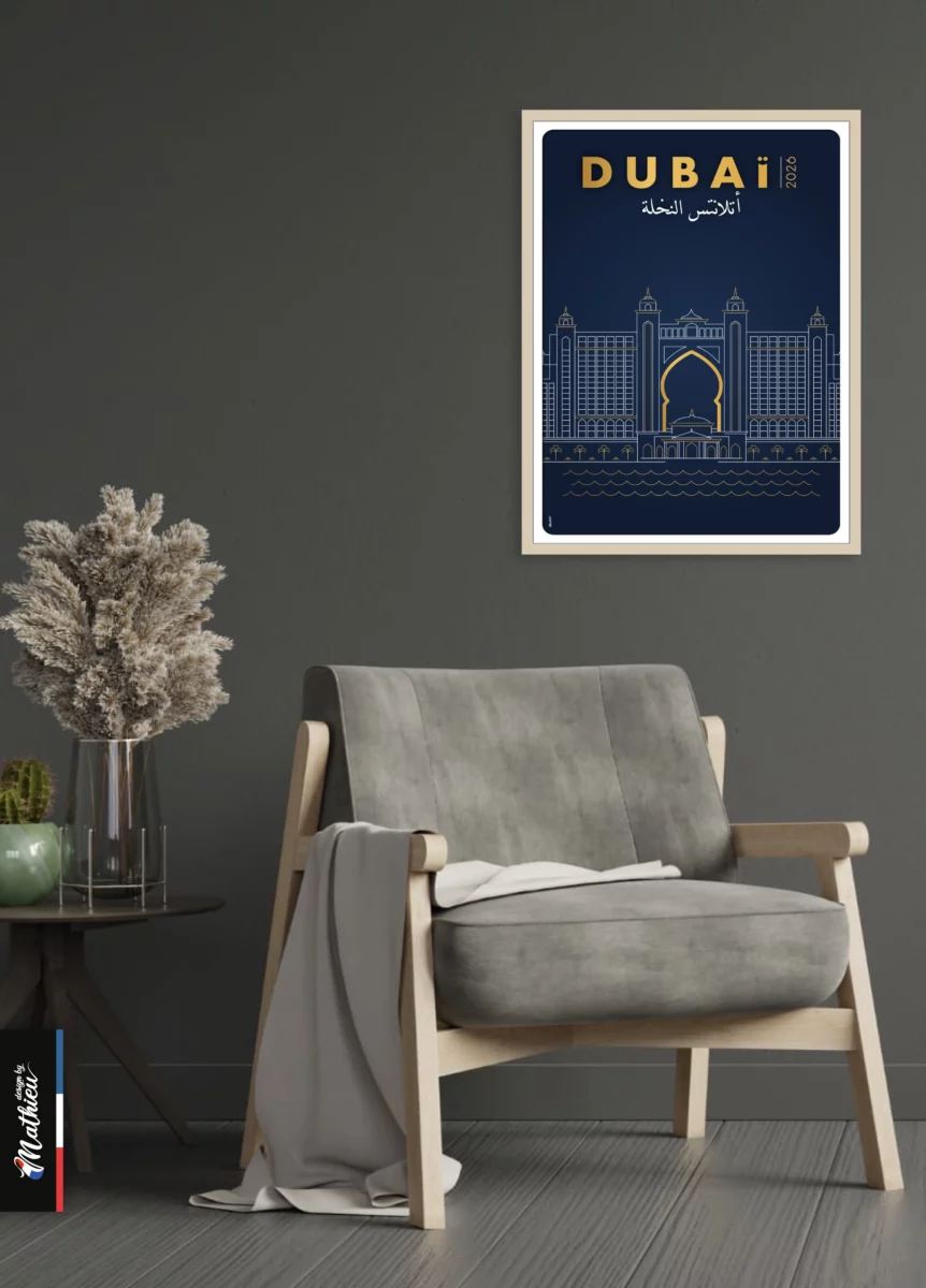 L’entrée spectaculaire vers un monde légendaire. Cette affiche capture la majesté architecturale de l’Atlantis The Palm, l’icône de l’île artificielle de Palm Jumeirah à Dubaï. J’ai choisi un traité graphique symétrique et précis, mettant en avant la complexité de sa façade et l’arche centrale monumentale qui semble s’ouvrir sur le Golfe Arabique. Une pièce forte, parfaite pour apporter une atmosphère exotique, une touche de grandeur et une véritable invitation au rêve et à l’évasion internationale à votre décoration murale.