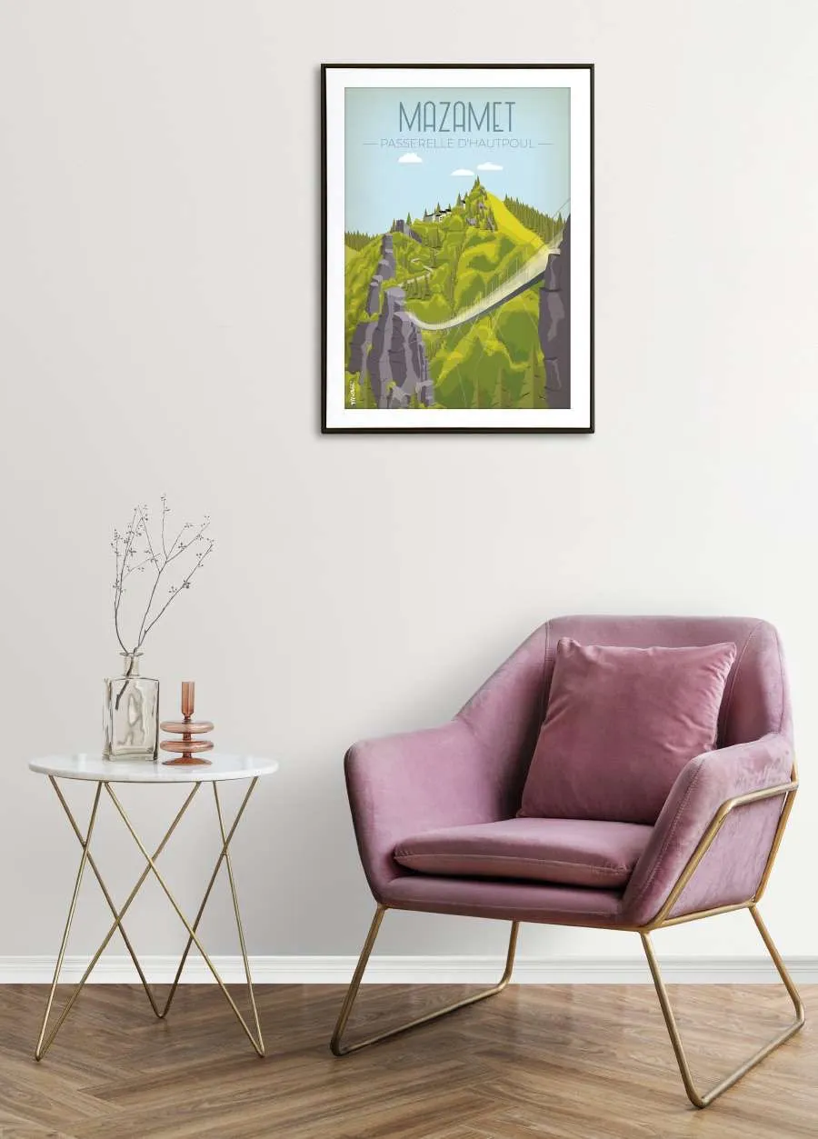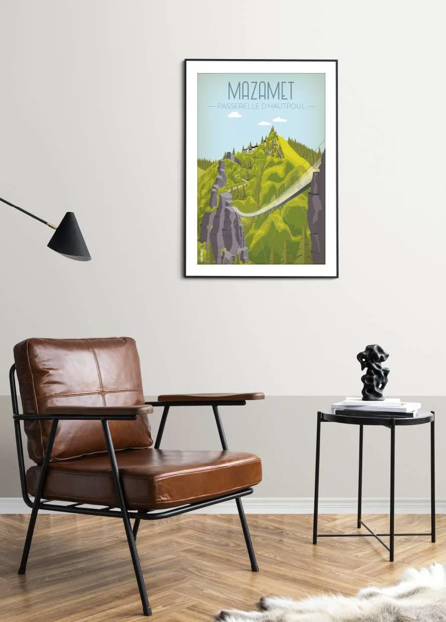 Apportez une touche d’originalité et de nature à votre décoration avec notre affiche de la Passerelle d’Hautpoul à Mazamet. Nichée dans le Tarn, cette passerelle suspendue offre une vue imprenable sur les paysages verdoyants et les charmants reliefs de la région. Cette affiche capture l’essence de cette expérience unique, idéale pour sublimer votre intérieur et raconter vos escapades. Disponible en 3 formats différents, elle s’adapte à tous vos espaces.