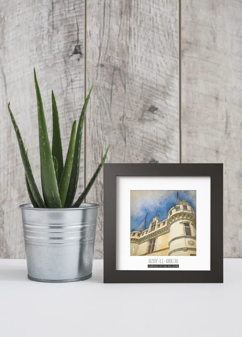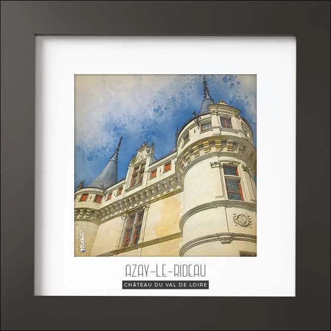 Magnifique photo du Château d’AZAY-LE-RIDEAU – VAL DE LOIRE en FRANCE, sublimée dans un cadre en bois noir mat de forme carré pour votre intérieur.