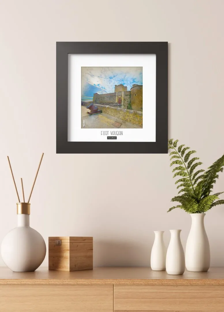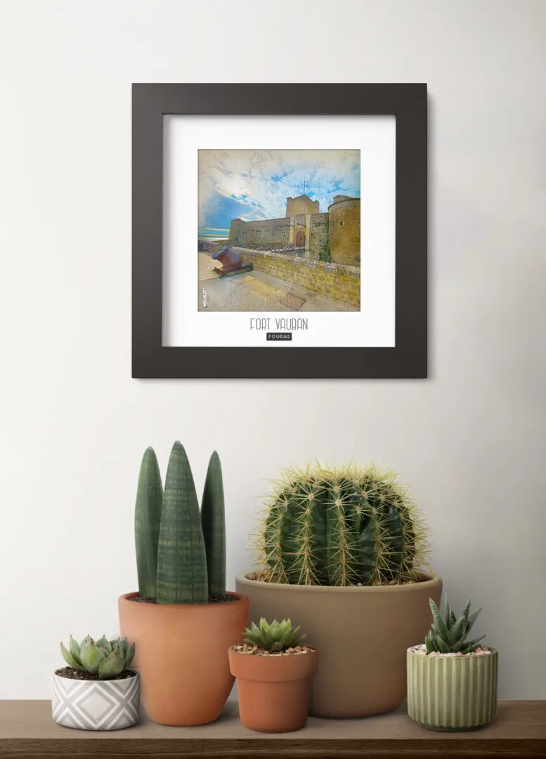 Magnifique photo du FORT VAUBAN à FOURAS en FRANCE, sublimée dans un cadre en bois noir mat de forme carré pour votre intérieur.