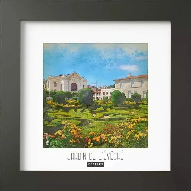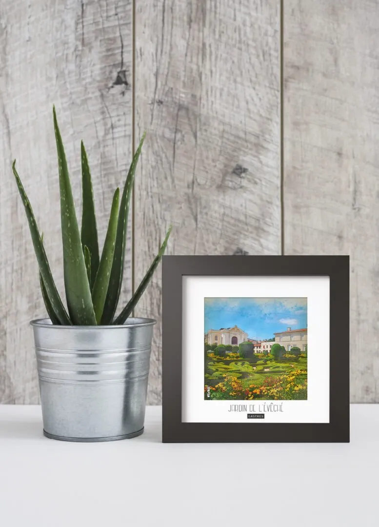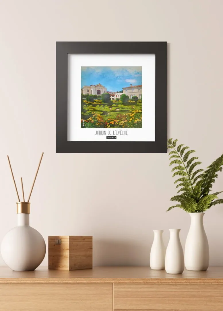 Magnifique photo du Jardin de l’Évêché à Castres, sublimée dans un cadre en bois noir mat de forme carré pour votre intérieur.