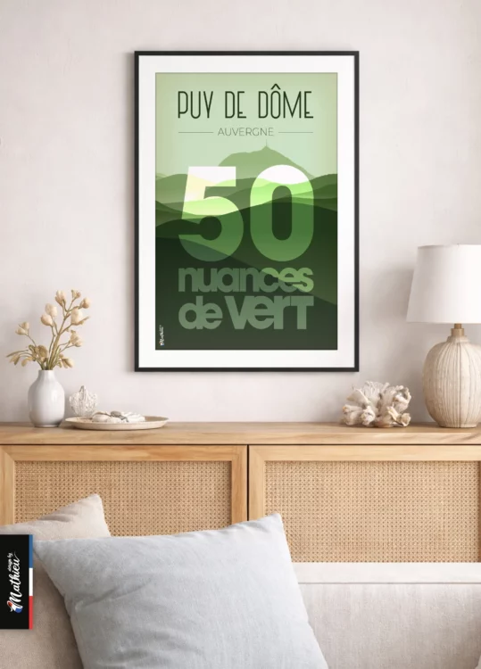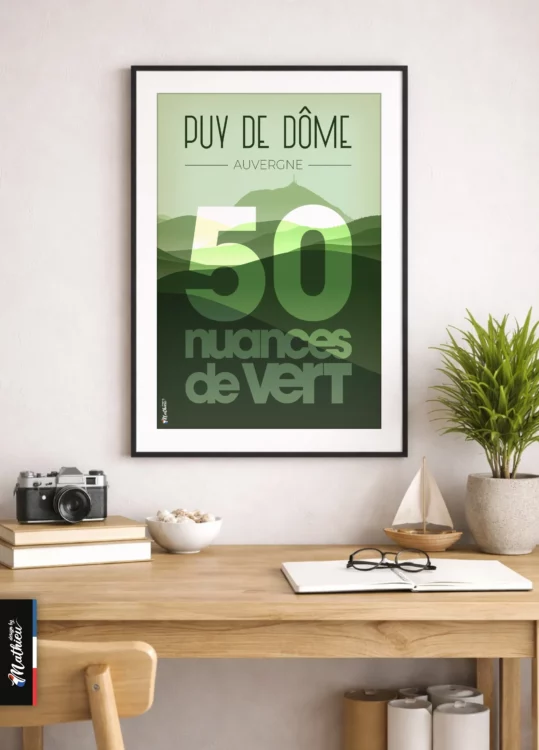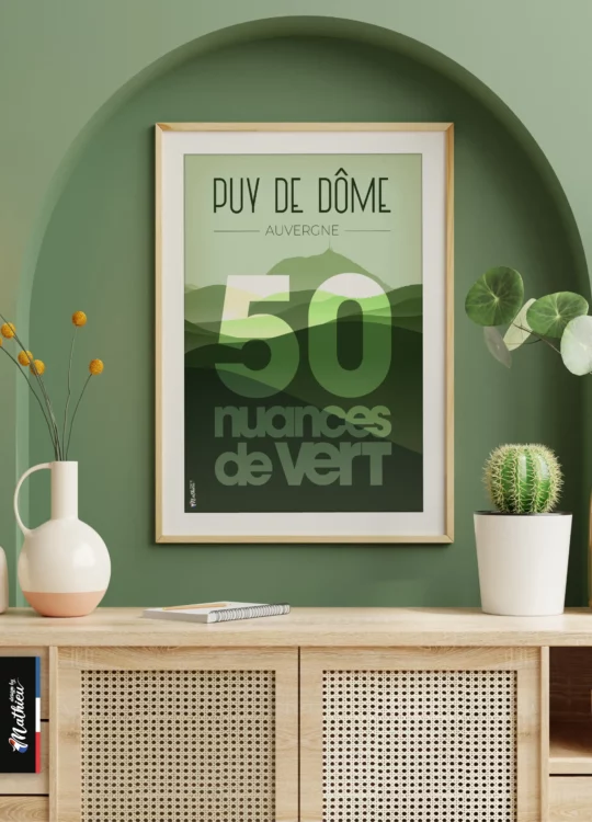 Transformez votre intérieur avec notre affiche du Puy de Dôme « 50 nuances de vert », un incontournable pour les passionnés de décoration intérieure. Disponible en trois formats adaptés à vos besoins, chaque affiche est soigneusement créée et imprimée dans notre atelier du Tarn à Sémalens, au cœur du Sud de la France.